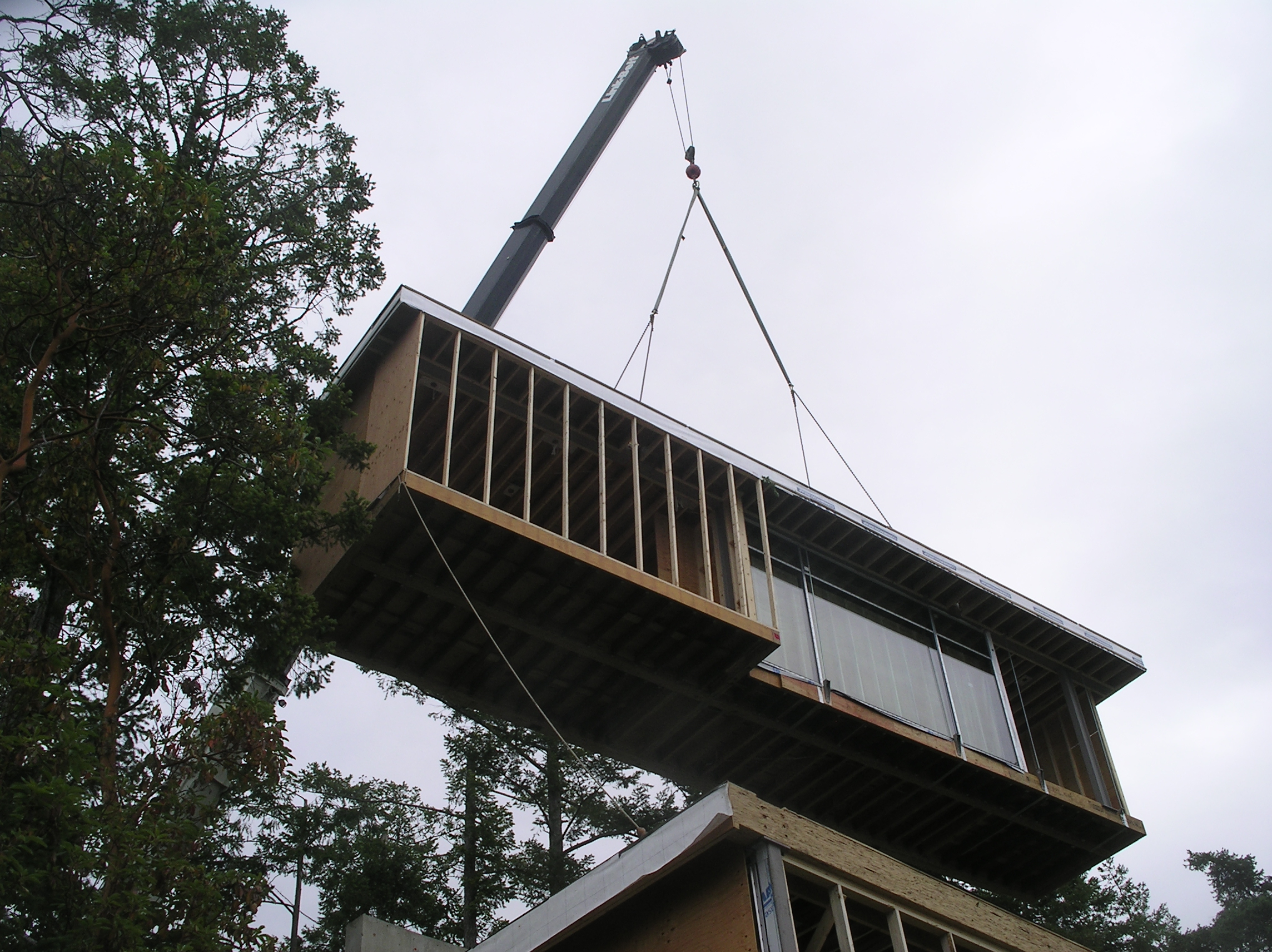 A prefabricated house on a cliff face.